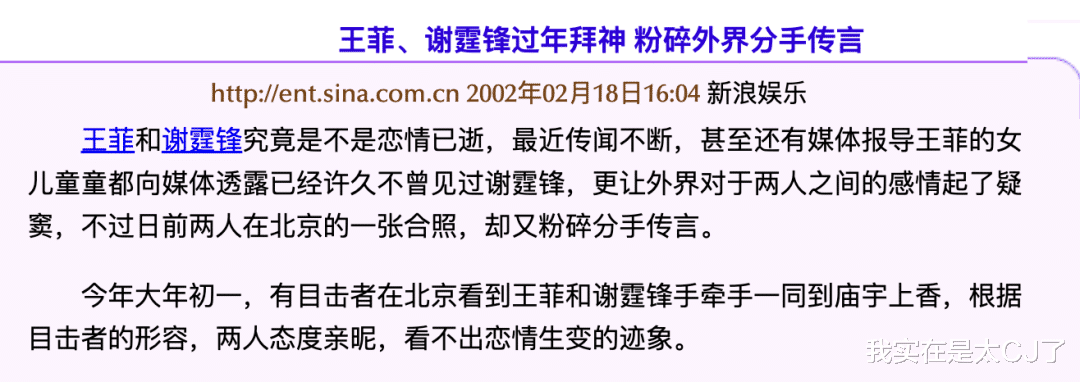 烫知识,这个时间点锋菲还没有正式分手,02年2月初谢霆锋还飞北京和王菲一起过除夕+初一上香+共度情人节,但“锋芝恋”也已经有点苗头。