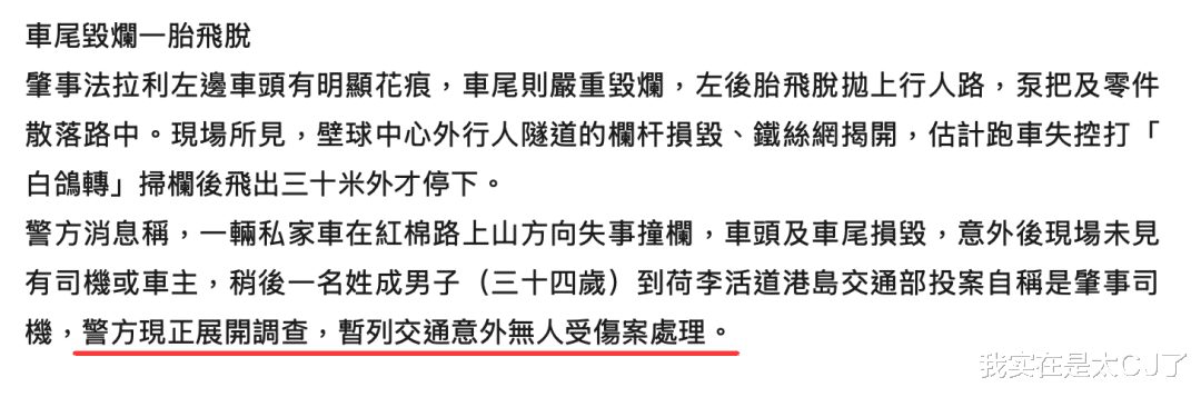 警方追查期间,有位叫成国定的34岁男子开着七人车来到港岛交通部自首,说红棉路上那辆法拉利F360是自己开的,还配合做了酒精测试,所以整个案子一度要按照“交通意外无人受伤”的标准来处理。