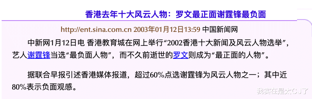 虽然谢霆锋之后凭努力重新获得好口碑,但无可否认“顶包案”是他一生抹不去的污点。2002年香港网友票选他为“年度最负面人物”就可见一斑。