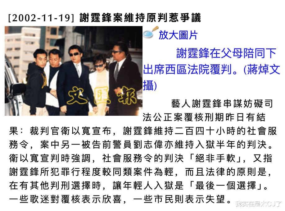 社会层面对此义愤填膺,谢霆锋和刘志伟对判决也不满意,又在完成了社会服务的2003年10月提起上诉,律师观点简单总结就是: