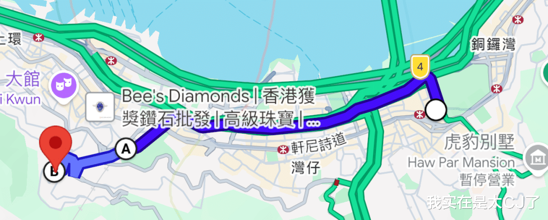 △图上的A点就是红棉路和壁球中心对过的“霆锋弯”,B是谢霆锋当时所住的裕景花园