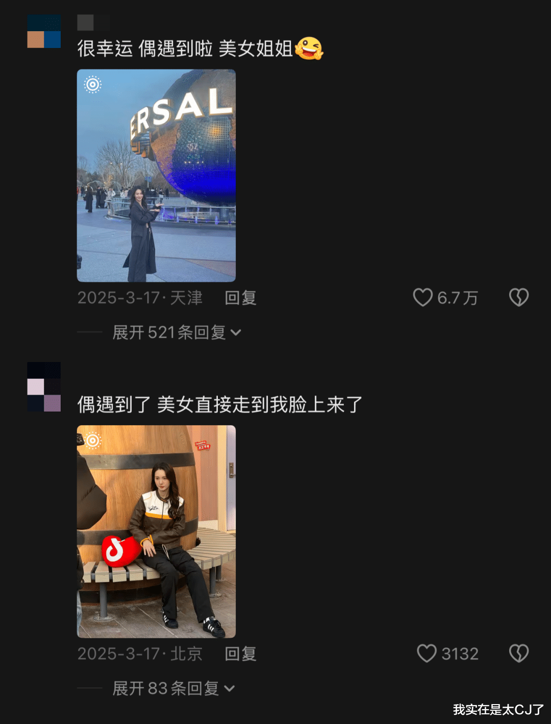 但这个质疑倒是很快被推翻了,因为大量路透分享都可以证明她是3月6号去的环球,只不过后期剪辑导致发布和网友回馈的时间滞后了。