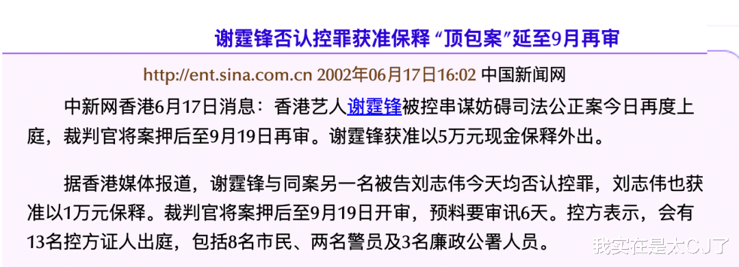 而谢霆锋被廉政公署以串谋妨碍司法公正的罪名起诉开庭,是6月7号的事情,后来又因为否认控罪+媒体一拥而上拍照造成混乱使得谢霆锋被砸伤,宣布案件延至9月再审。