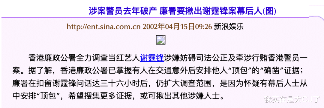 当时就有人猜该不会真是谢霆锋出事,只是怕暴露和张柏芝的交往才找人顶罪脱身,制造不在场证明。而他的助理阿辉还斥责离谱,“这样做是妨碍司法公正的,警方一定会调查此事。”