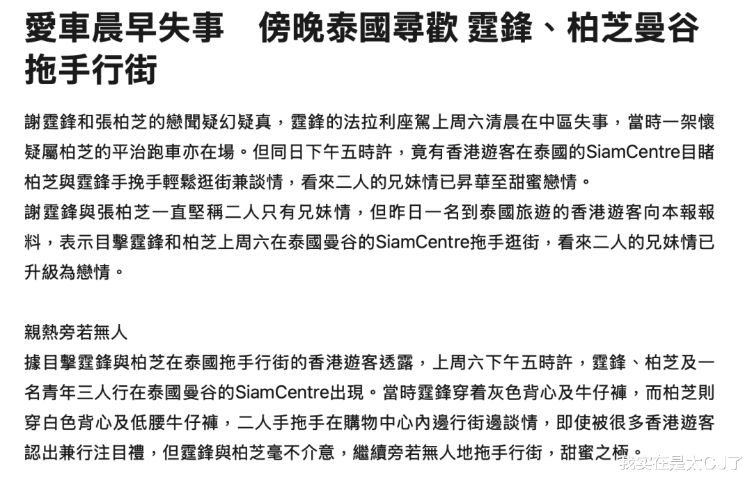 而几天后锋芝二人又在曼谷街头被香港游客目击手牵手👇