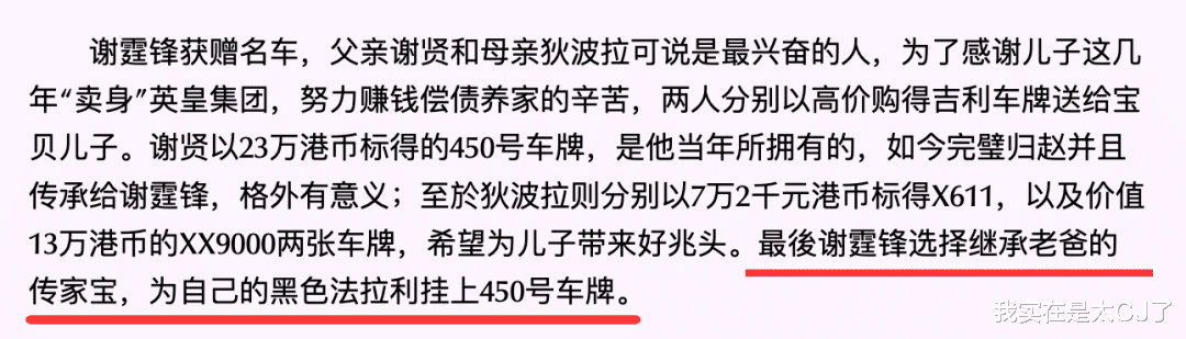 450号无字头车牌是谢贤当初23万港币拍下来的“传家”号码也一并挂在这辆F360上,所以警方一开始溯源的结论是“由公司所有”,谢贤和谢霆锋注册的谢氏兄弟公司怎么不算“公司”呢?