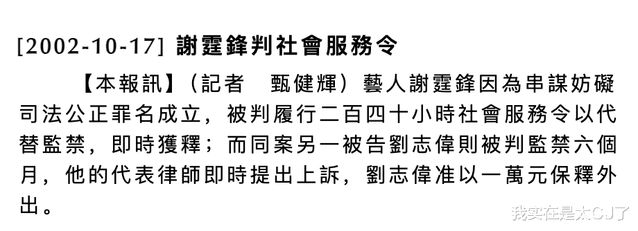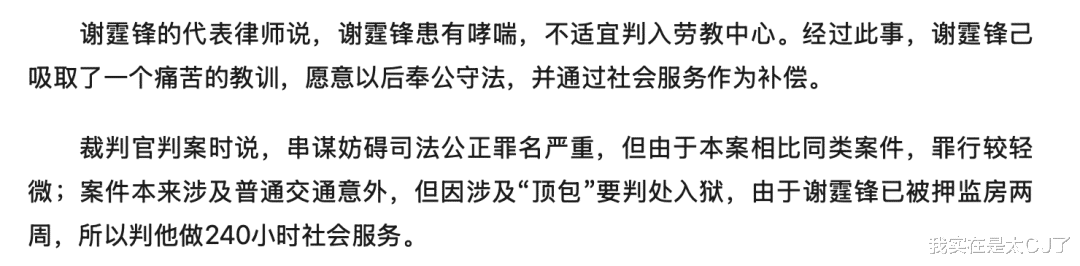 案子一拖又拖到那年10月2号才裁定谢霆锋妨碍司法罪名成立,至于正式宣判处罚结果则是在10月16号,没有像外界猜测那样要让他坐上几年牢,而是判了240小时社会服务令。