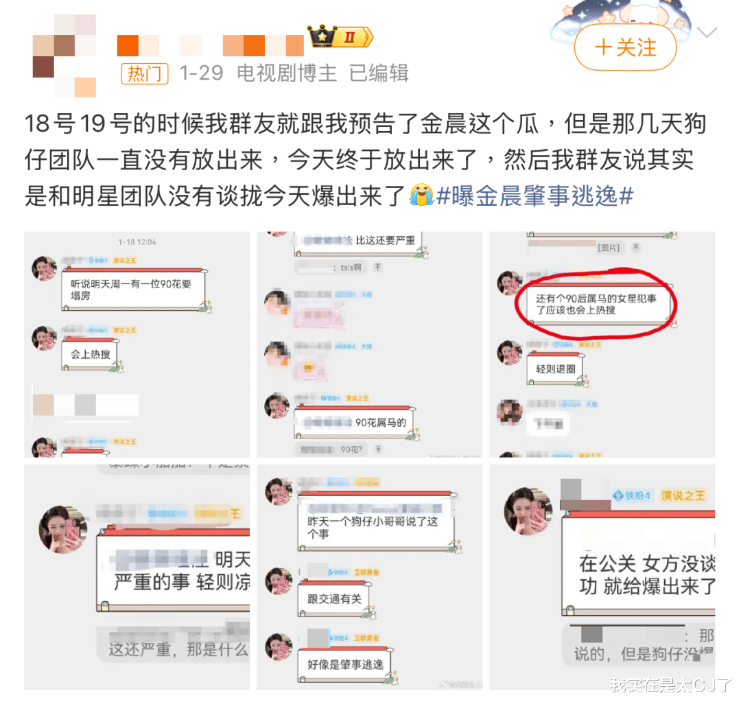 让金晨“翻车”的事情是去年3月发生的,虽然太平了大半年,但还是有某个环节失去控制,消息在小范围内流传开来。