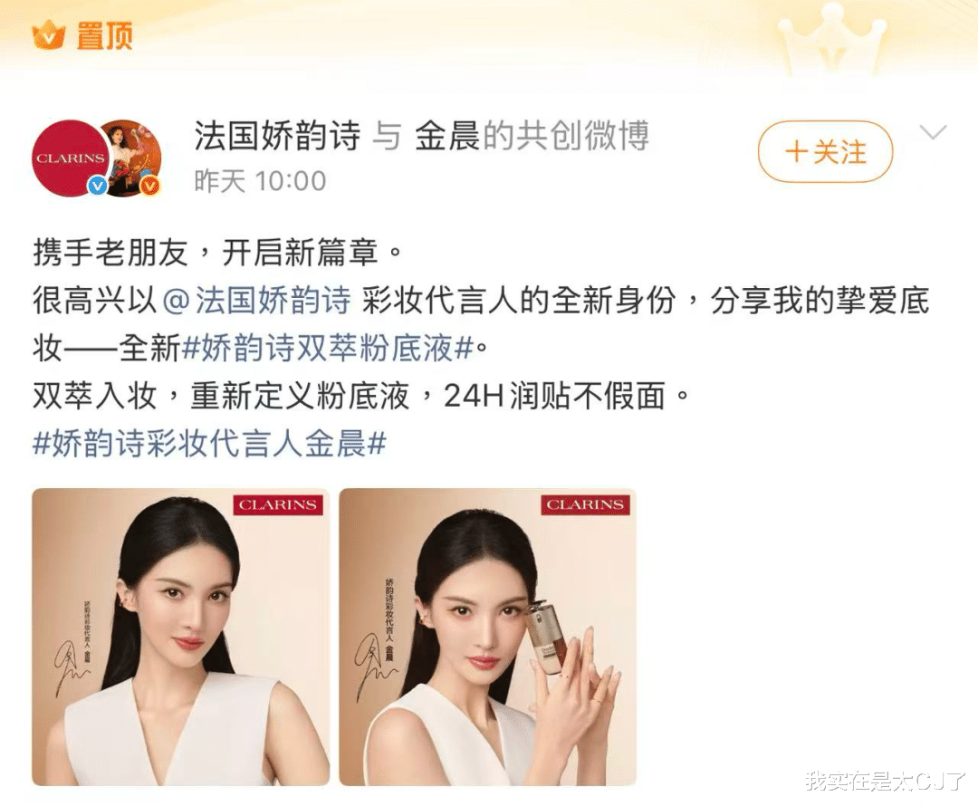 最难的就是娇韵诗,1月28号才官宣金晨出任品牌彩妆代言人👇