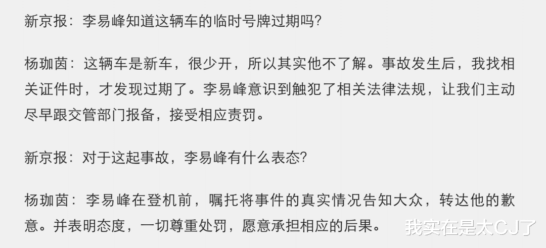 连李易峰不知道临时牌照过期这事,经纪人都100%承担了,整个采访反复强调李易峰主观上是希望尽快报案也不惮于向公众承认错误的。