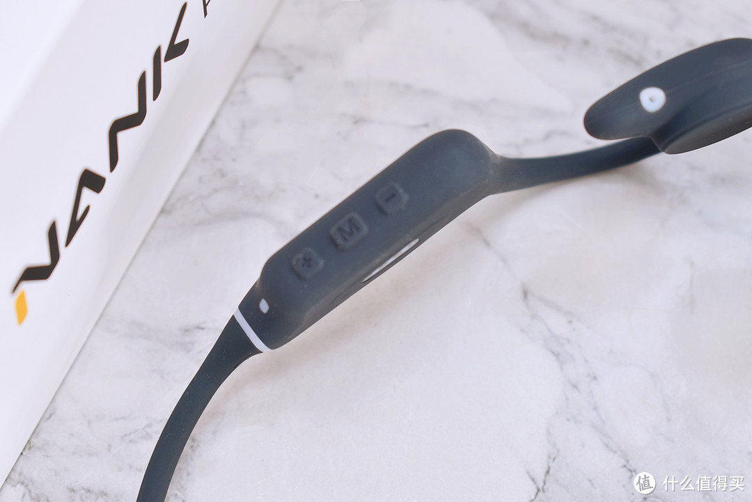 Runner Pro 5 整机重量为31.1克,配合升级EAA-2.0悬停舒适技术,佩戴起来不会对眼镜造成任何压力。操控上也特别容易上手,“+”键长按及短按是增加音量和上一曲,“-”键是减音量和下一曲,中间的“M”键即是电源器,也是切换MP3和蓝牙模式的开关,切换只需三连击“M”键。三个按键设置在一起,方便单手操作,盲按时也能够明显感觉到中间功能键的凸起,不会有误操作现象。