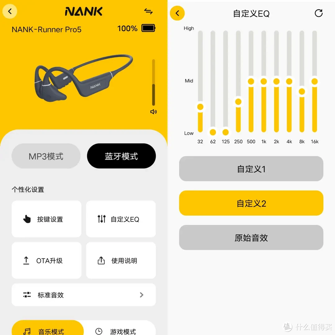 最后别忘了,这款耳机还支持APP联动,通过APP可实时查看耳机电量,还有调节EQ音效模式、MP3模式、游戏低延迟模式等多样附加调节功能,自定义和可玩性非常高。
