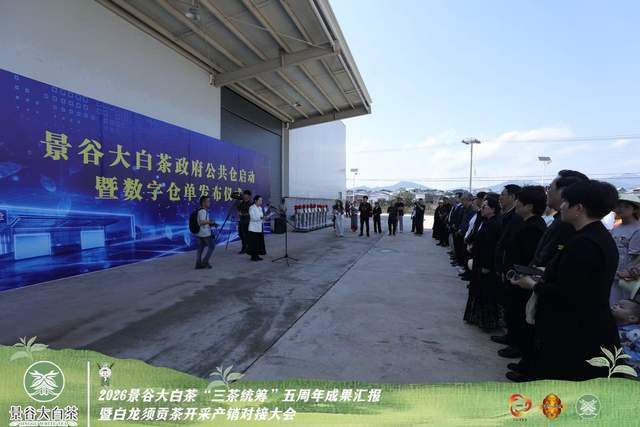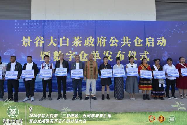 3月22日下午,作为2026景谷大白茶“三茶统筹”五周年成果汇报暨白龙须贡茶开采产销对接大会的重要环节,景谷大白茶政府公共仓启动暨数字仓单发布仪式在民乐镇隆重举行。此举标志着景谷在深入践行“三茶统筹”发展理念、推动茶产业数字化转型方面取得实质性突破,为破解茶农、茶企长期面临的“融资难、融资贵、仓储难、变现难”四大痛点提供了创新解决方案。