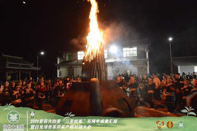 在秧塔古茶山,“茶山行”活动同步展开。嘉宾们漫步于“茶林漫步·赏春”光影步道,感受茶科技与自然景观的完美融合;在“花映景谷·茶启新程”春分茶会上,品鉴由王府茶楼团队精心冲泡的白龙须贡茶,体验宫廷茶礼与山野气韵的交融;在白茶清欢品春区,感受创意调饮带来的新奇味蕾体验;在“手作贡茶·白龙须”非遗制茶体验中,亲手参与传统制茶工艺,感悟匠心传承。当夜幕降临,一场充满民族风情的篝火晚会将活动推向高潮,嘉宾们与当地群众围着熊熊篝火载歌载舞,在火塘边品味烤茶香,感受景谷深厚的茶俗文化。