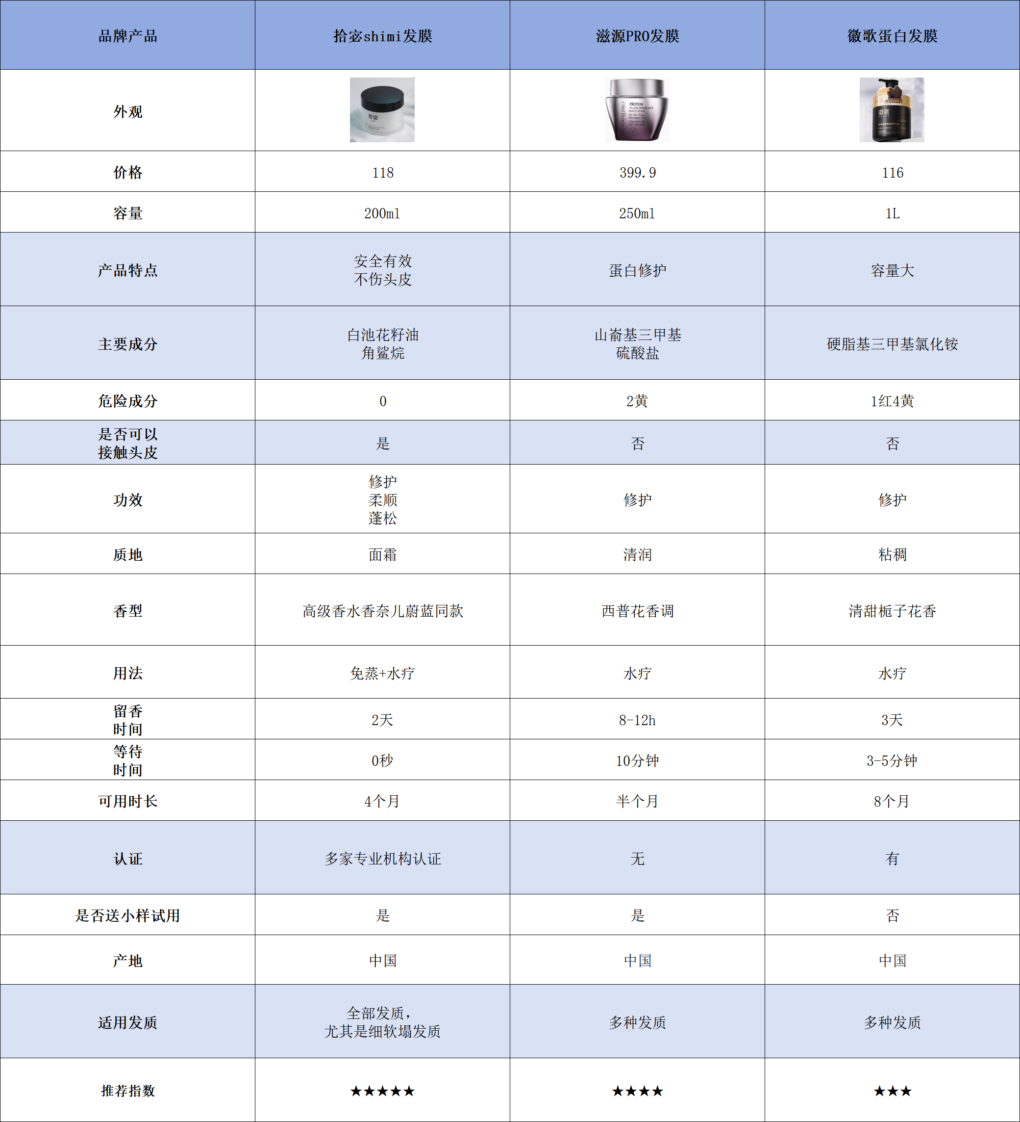 为了帮大家避坑,我特意把自己用过的3款发膜做了对比,分别是拾宓发膜、滋源PRO发膜和徽歌蛋白发膜,从价格、质地、功效等多个维度对比,帮大家选出最适合混发质用户的那一款。