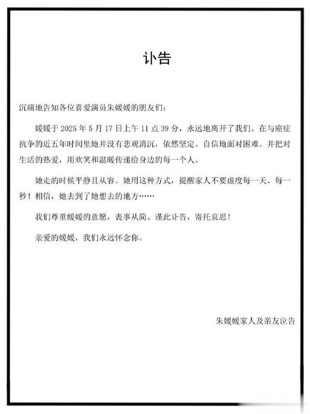 落幕与铭记朱媛媛的离世令无数观众痛惜,但她留下的经典角色与敬业精神永不褪色。正如网友所言:“她演活了普通人的悲欢,也活出了自己的精彩。”遵照遗愿,她的丧事从简,但人们对她的怀念将长存于光影之间。