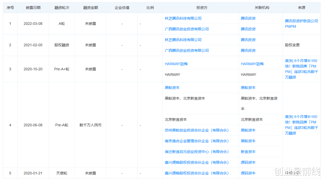 创立不到一年,PMPM便快速完成三轮融资,累计融资金额超1亿元。其股东阵容涵盖专业投资机构(如黑蚁资本、源码资本)、新兴美妆零售机构(如HARMAY话梅),以及互联网巨头旗下投资机构(如腾讯投资)。
