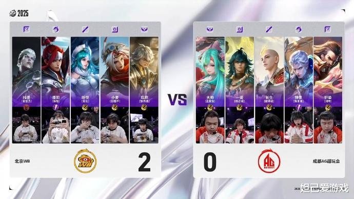 双方BO7前两局,也不知道是zwy过于自信,还是AG没有从上一把对阵RNGM的“阴影”里走出来,AG拿着相同的剧本,先给对手放一个鲁班大师,被WB打了1:0后,第二局又把盾山给对面放了一手。不得不说AG的选手真是硬,直接扛着两个T0英雄被打了两局。