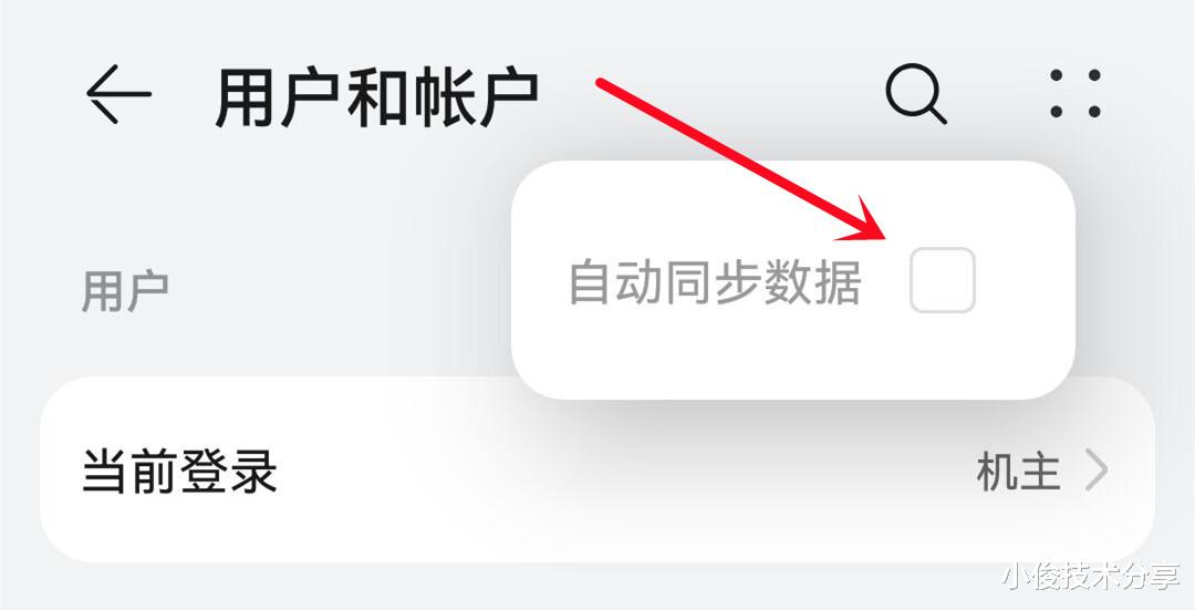 同样打开手机设置页面,滑到最后面,找到用户和账户,点击进入,再点击右上角的四个点,这里就有一个自动同步数据的开关了,默认情况下一般都是打开的,你打开你的手机看看是不是这样。一旦打开之后,手机上的数据呢,就会自动在后台进行同步到云端。