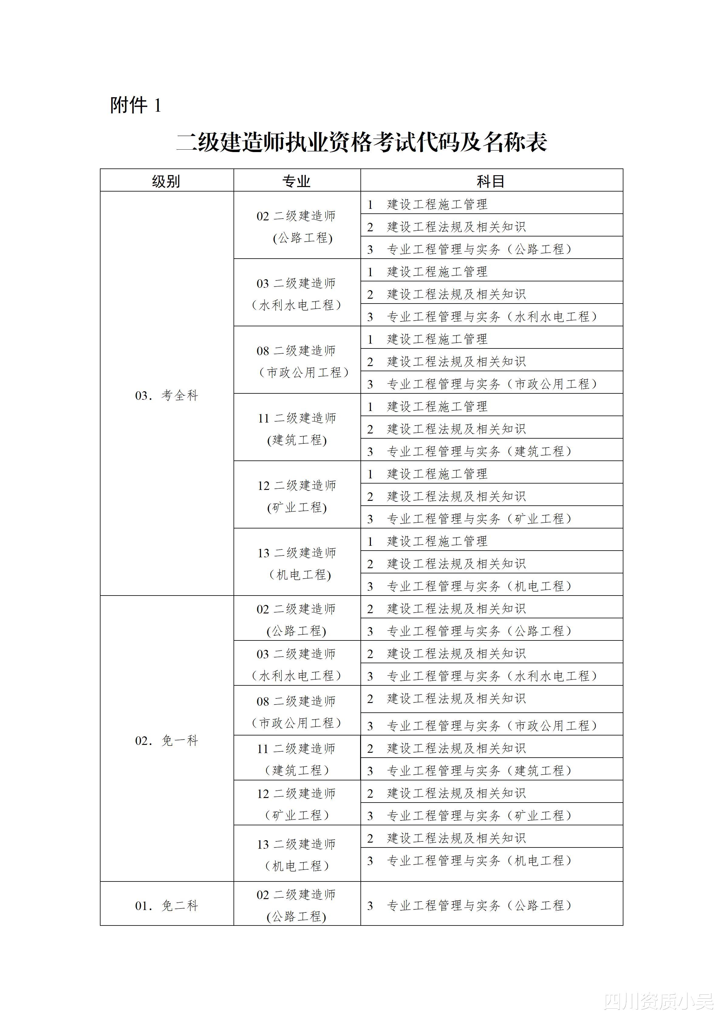 附件:1.二级建造师执业资格考试代码及名称表