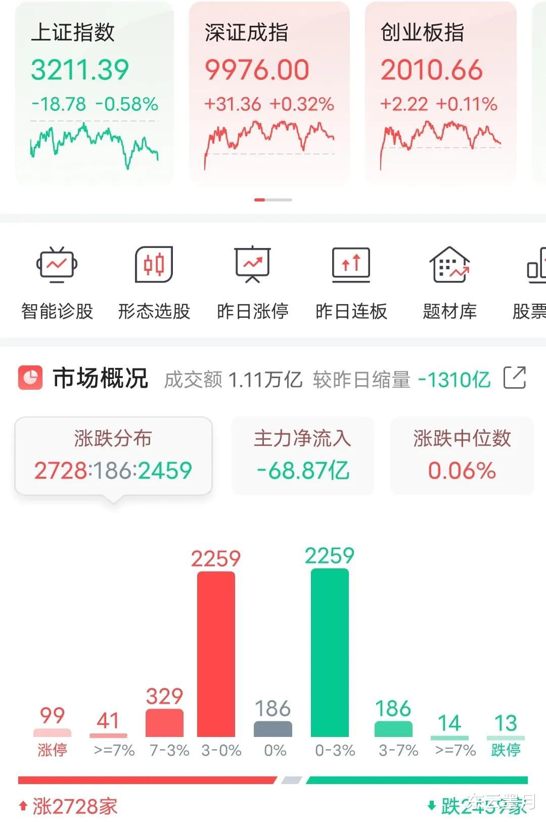 今天还是交易量能再次缩量,沪深两市全天成交额1.11万亿,反映出市场情绪的低迷和投资者的谨慎态度。后期继续关注大盘量能,有量才能上涨!这几天虽然日内都有跳水,但是整体大跌可能性不大。