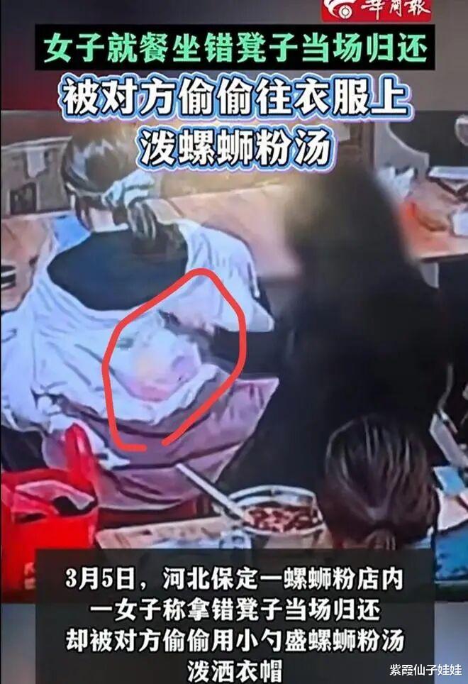 她没有因对方退让而消气,反而因这点小事怀恨在心。趁王女士低头吃饭、毫无防备之际,多次回头观察时机,确认无人注意后,悄悄拿起汤勺,从自己碗里舀起滚烫的螺蛳粉红油汤,精准倒进王女士的羽绒服帽子里,一连三勺,全程冷静、刻意、毫无犹豫。