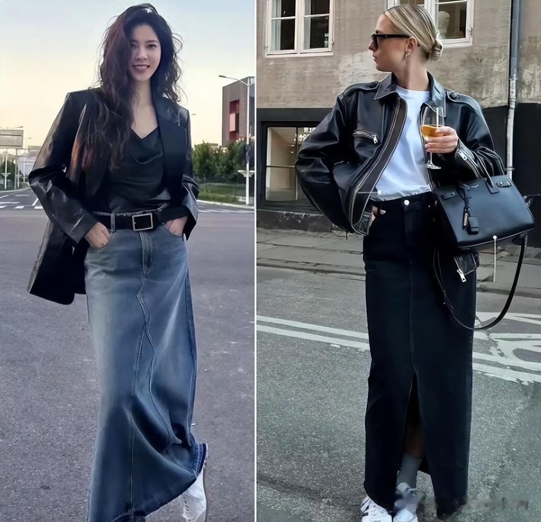 黑色皮衣配牛仔半身裙,简约而不简单的经典搭配。黑色皮衣百搭帅气,牛仔半身裙经典休闲,两种基础单品碰撞出不一样的火花。这种搭配既不会出错又很有看点,是懒人的时髦选择。适合日常出行,既舒适又不失时尚感。