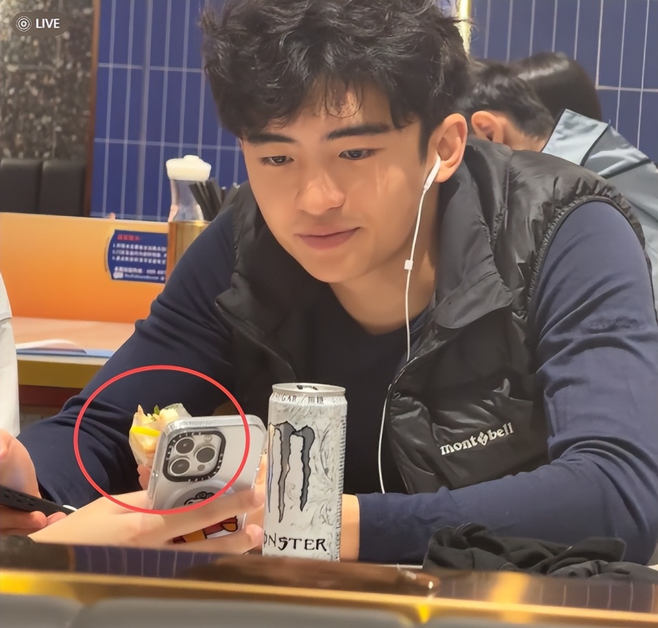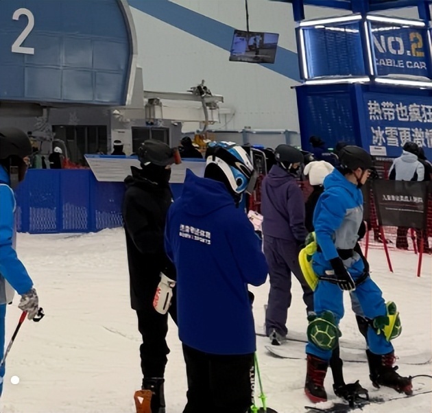 这不,12月13日有人在深圳滑雪场看到他,当时他正坐在桌子旁吃三明治,一边玩手机一边听音乐,戴着耳机,看起来挺酷的。