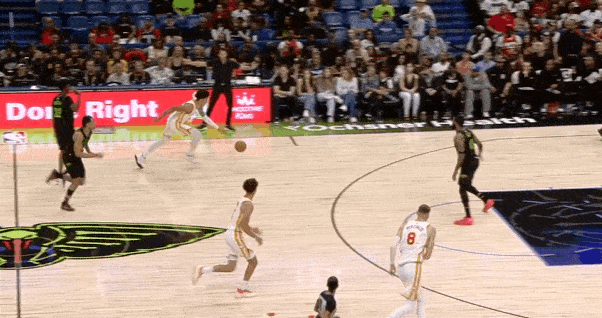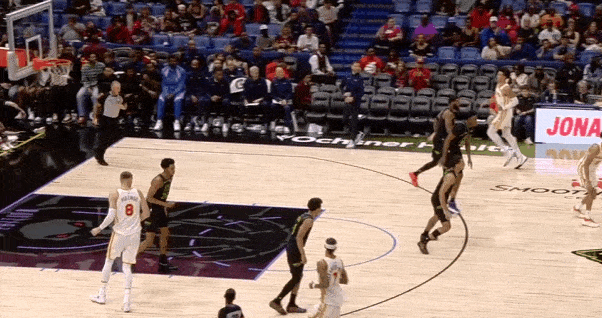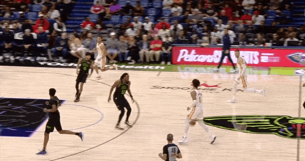 转换进攻要到墨菲错位后,抓早期进攻鹈鹕阵地防守立足未稳内线深处背身要球,接到球后迅速转身摆脱墨菲后扣篮终结。