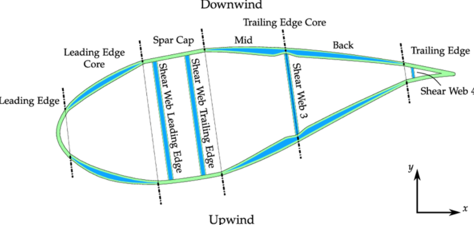 在风电叶片截面关键结构点(如前缘、主梁帽、尾缘)的分布中,NanoBarb氮化硼纳米管可针对性应用于高应力区域,实现关键部位的增强与抗分层优化