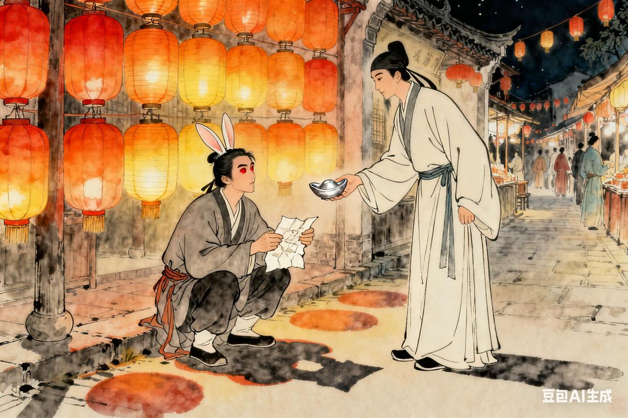 到了扬州,他住的客栈楼下就是夜市。有天晚上,他看见一个穿青布衫的公子,蹲在街角哭,手里攥着一张皱巴巴的信。他走过去,把一锭银子放在那公子手里。公子抬头看他,眼睛红得像兔子:“我……我没钱回家了。”他拍了拍那公子的肩:“钱算什么,先回家再说。”那天晚上,他一共给了多少银子,自己也记不清了,只记得夜市的灯笼,把他的影子照在地上,跟来来往往的人叠在一起,像一场热闹的梦。后来有人问他,为什么要散那么多钱,他只笑:“天生我材必有用,千金散尽还复来——钱没了,还能再挣,可人心要是冷了,就暖不回来了。”
