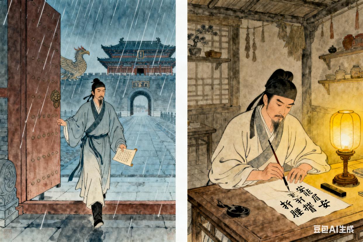 可没过多久,他就发现,长安的宫墙,比终南山的茅屋顶,更让人憋得慌。他每天的活,就是写《宫中行乐词》,写《清平调》,给皇帝和贵妃取乐。有一次,贵妃让他写新词,高力士在旁边站着,眼神里带着不屑。他喝醉了,指着高力士说:“你过来,给我脱靴!”高力士脸都青了,可当着皇帝和贵妃的面,还是蹲下来给她脱了靴。那天晚上,他在宫里喝了很多酒,看着宫灯的光透过窗纸照进来,心里却凉得很——这不是他想要的,他想要的是“致君尧舜上,再使风俗淳”,不是当个只会写艳词的“御用文人”。