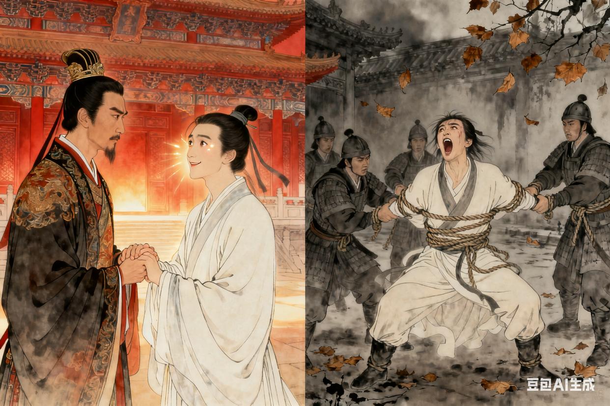 没过多久,永王兵败的消息就传来了。他正在屋里写战策,突然冲进一群士兵,把他按在地上。他挣扎着喊:“我是来平定叛乱的!我没有反!”可没人听他的,士兵把他绑起来,押着他往外走。他看着院子里的树,叶子都黄了,心里像被刀割一样——他一心报国,怎么就成了“附逆”的罪人?
