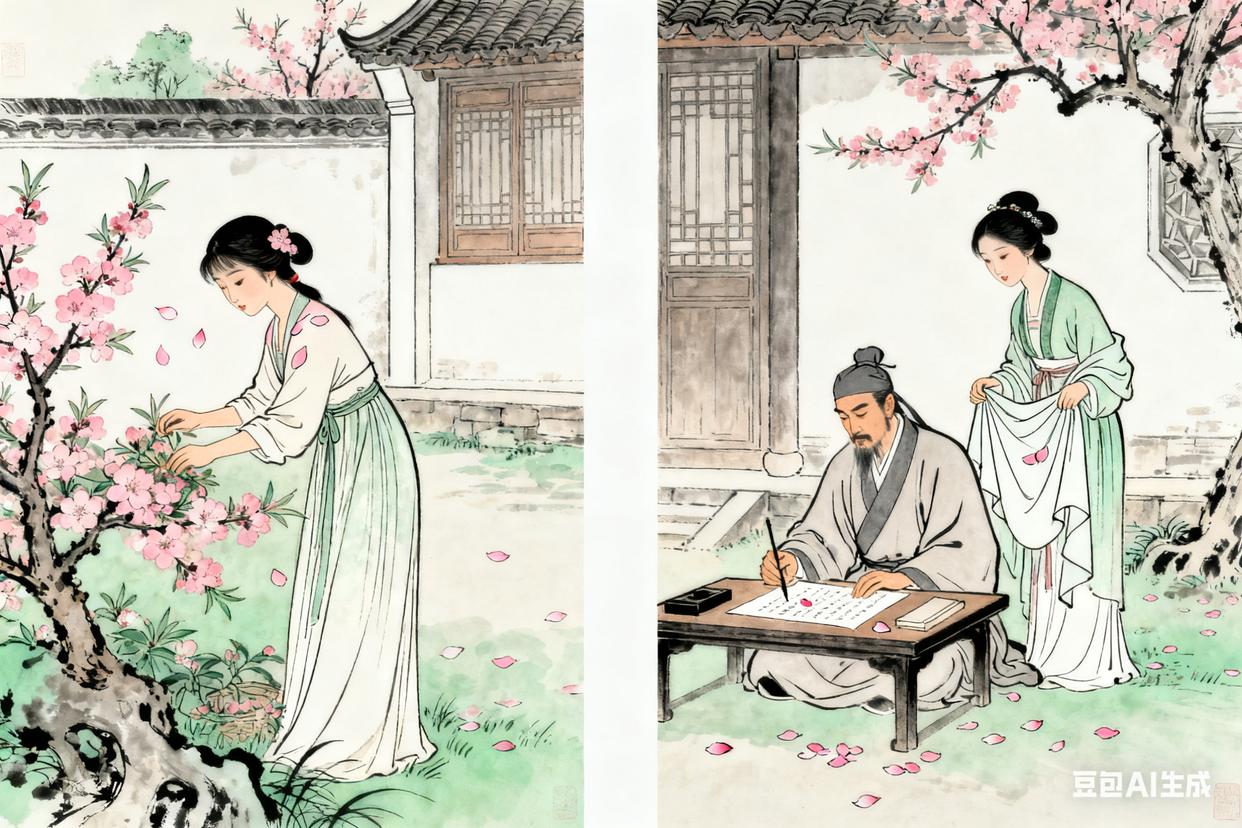 727年,他在安陆的街上,看见一个穿素色裙子的姑娘,在院子里摘桃花。姑娘抬头看见他,手里的桃花落了一朵在地上。后来他才知道,那是故宰相许圉师的孙女。再后来,他成了许家的女婿,在安陆住了下来。每天早上,他会帮妻子扫院子里的桃花瓣,妻子会给他煮一碗粥。有天早上,他拿着《上安州裴长史书》,坐在院子里修改,妻子过来给他披了件衣裳:“又在想求官的事?”他点点头,又摇摇头:“我想做点实事,不想只当个诗人。”可那封信送出去后,就像石沉大海,没了消息。他坐在院子里,看着桃花瓣落在信纸上,心里空落落的——原来连求一个机会,都这么难。