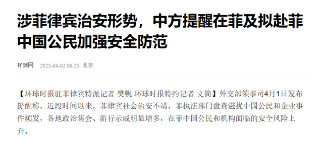 如今随着郭从愿的遇害,也让无数人看到菲律宾治安问题有多严峻,我国外交部在4月1日发布提醒称,近段时间内,由于菲律宾社会治安管理问题,各地政治集会、游行示威明显增多,在菲中国公民和机构面临的安全风险上升。