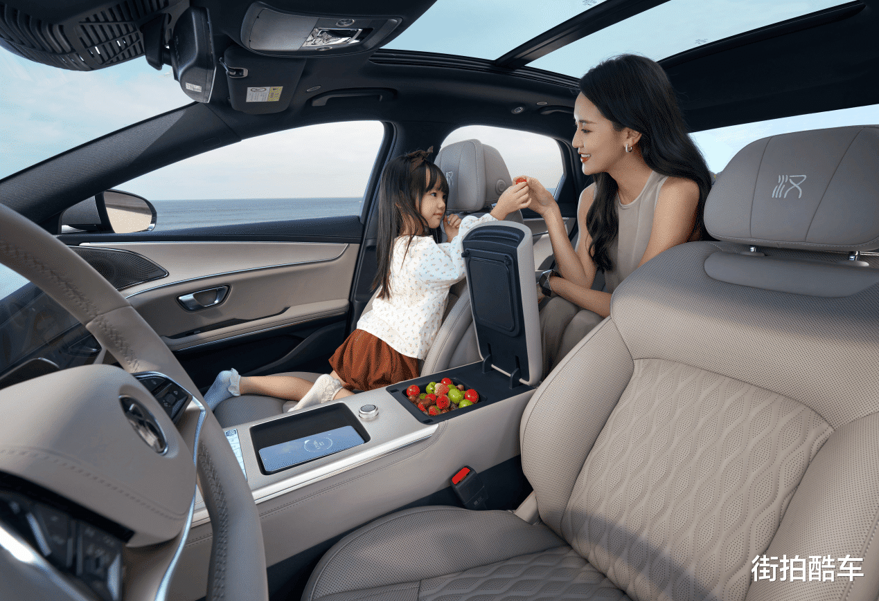 新车推出雾凇金等三款定制车色,灵感均源自中国自然奇观。座舱升级激光拉丝面板、电子怀挡等配置,配备4.5L智能冰箱、ANC主动降噪及防晕车系统。与好孩子安全座椅等生态产品深度联动,构建全家出行解决方案。