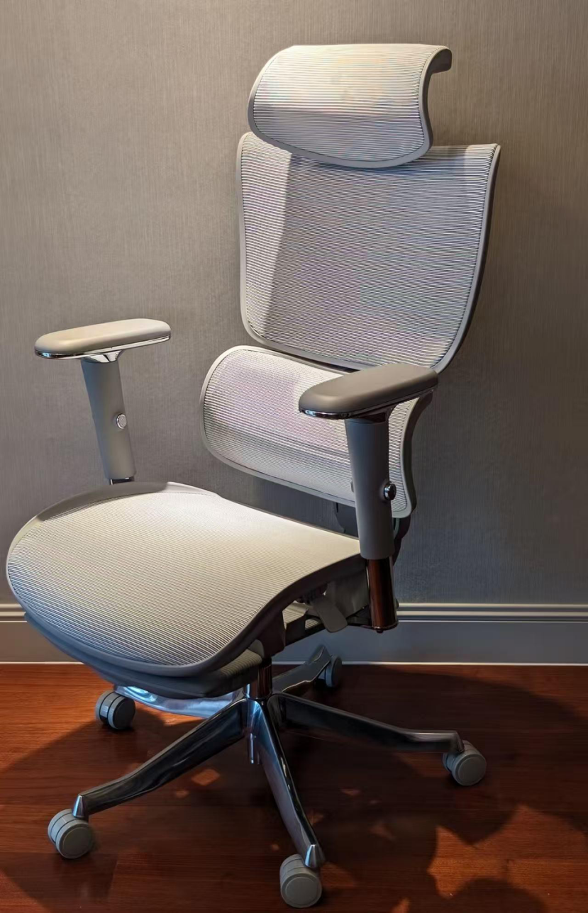 网布透气性不错,夏天久坐不容易闷。整体结构给人的感觉比较扎实,安全感强,但外观偏低调,设计语言也比较传统,再加上价格不低,更像一把“功能优先”的务实型椅子。
