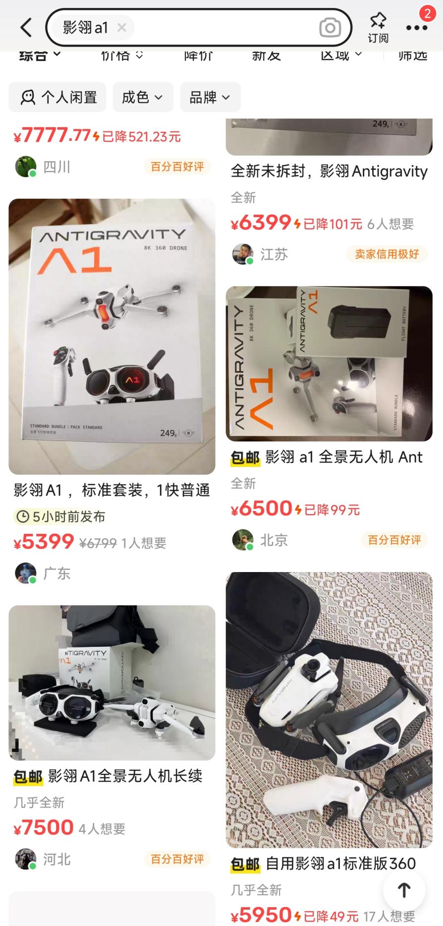 二手市场的反应,或在印证"遇冷"传言。影翎A1发布后,闲鱼等二手平台上迅速涌现大量该产品折价转售信息,折价幅度普遍在400-1000元,全新未拆封的机器不在少数。