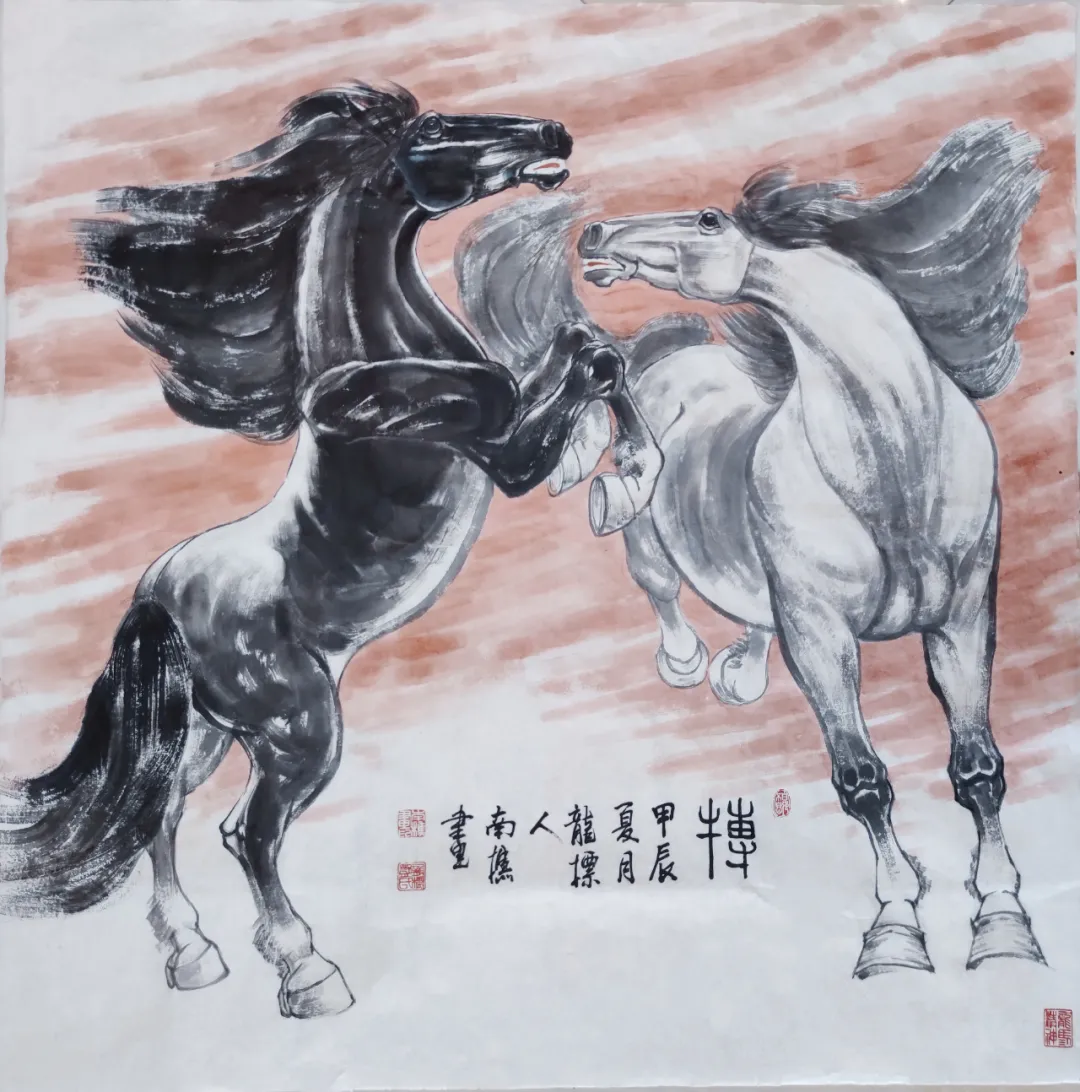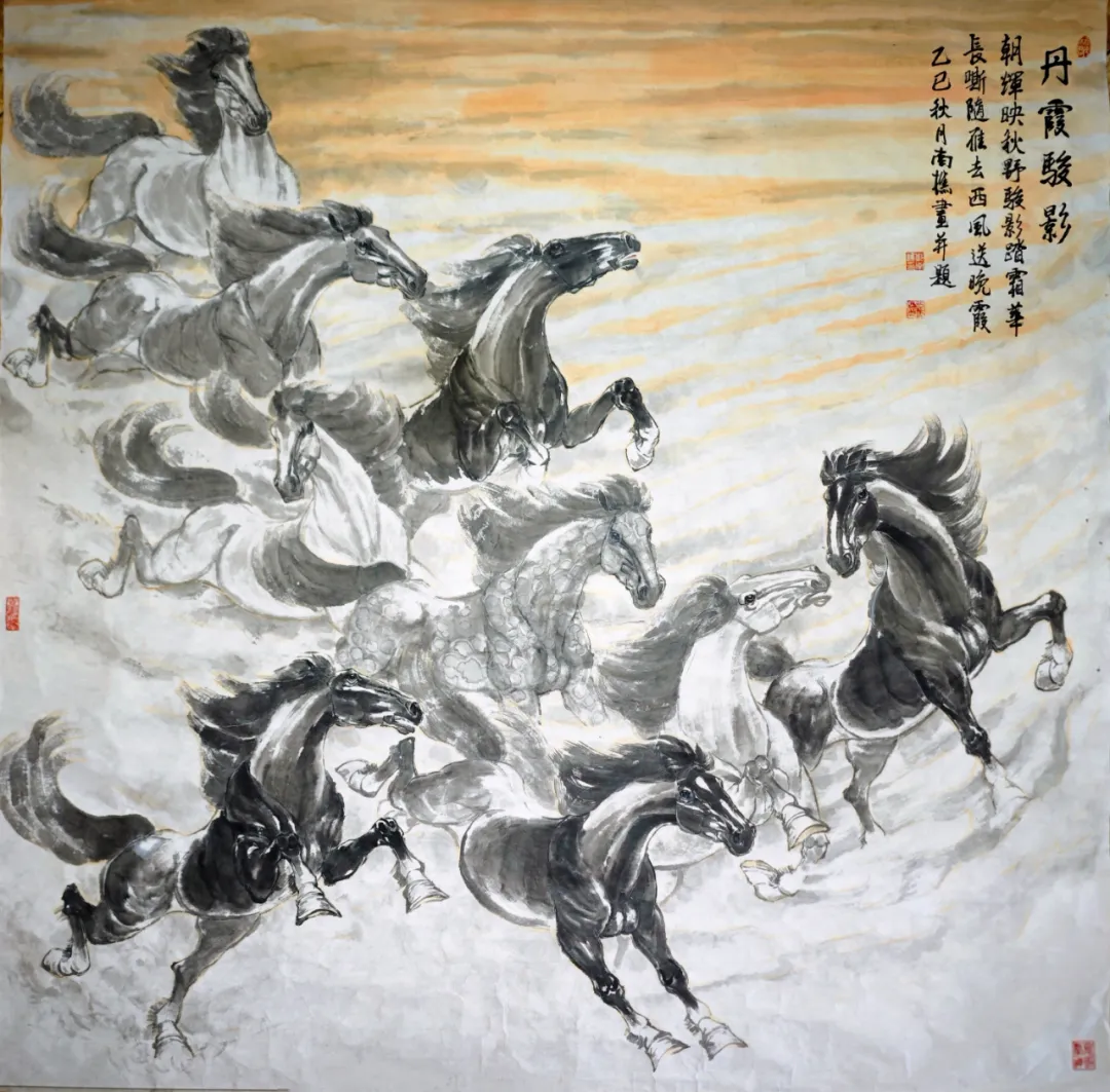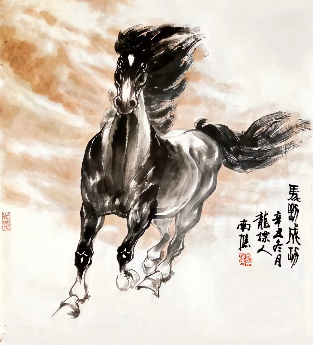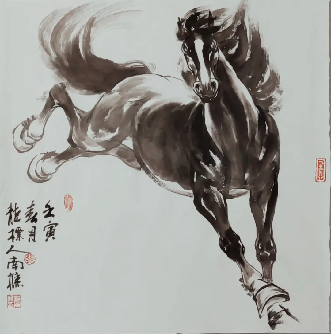 在当代画坛,邓南樵以马为魂,独树一帜。其笔下骏马,或奔腾如疾风骤雨,气势磅礴;或悠然似闲云野鹤,自在洒脱,将马的万千姿态与神韵展现得淋漓尽致。