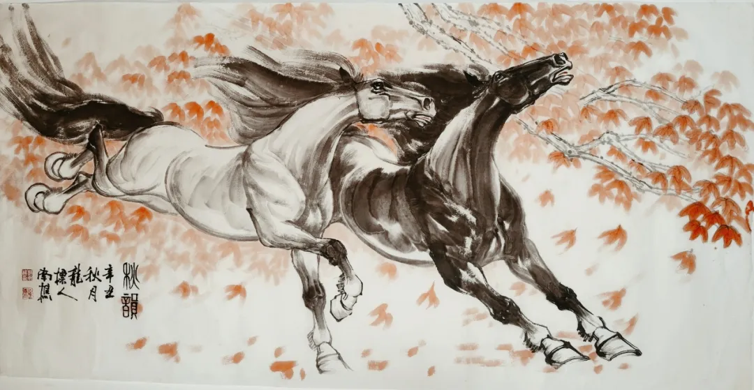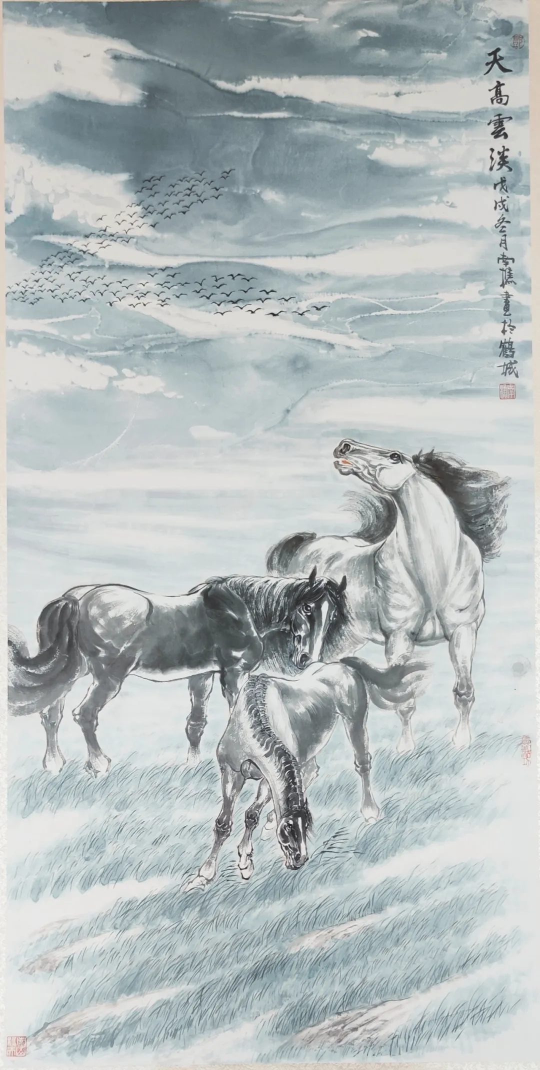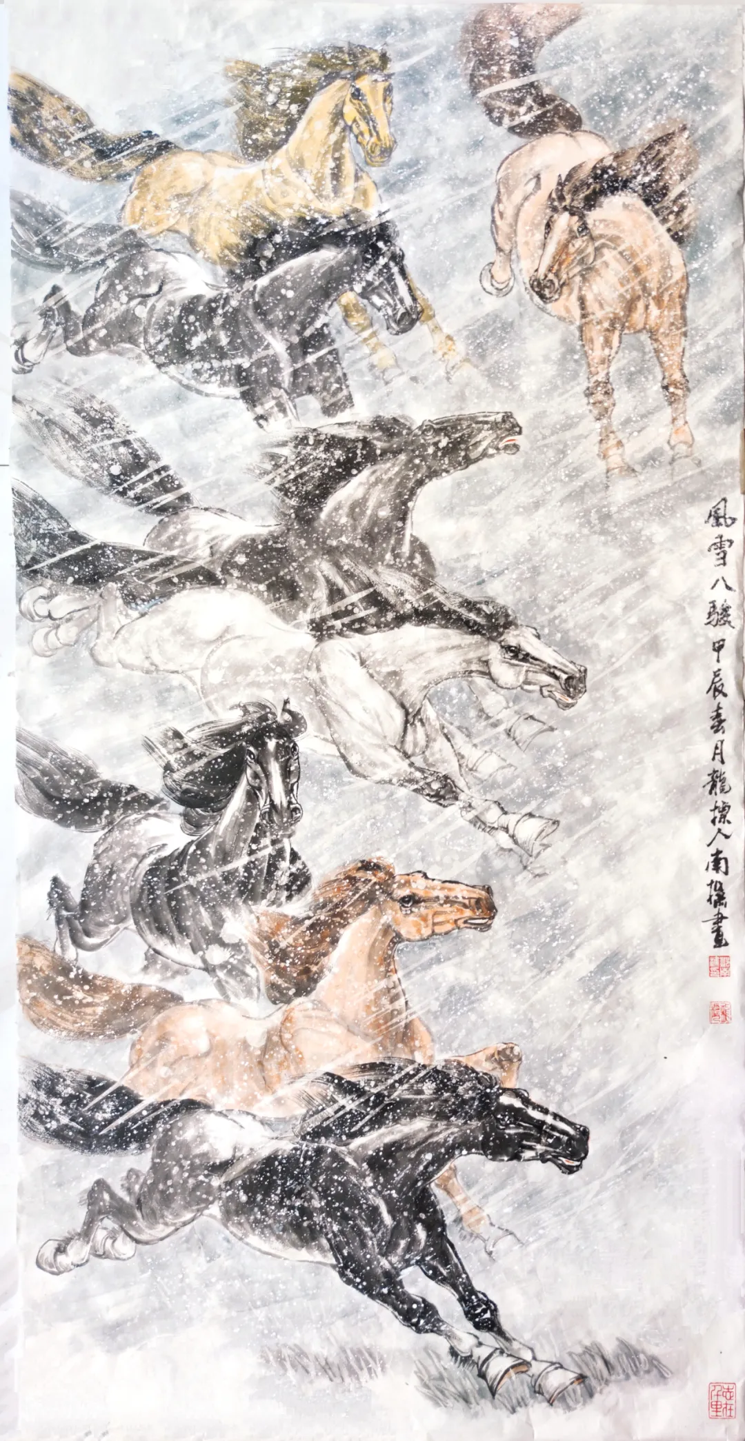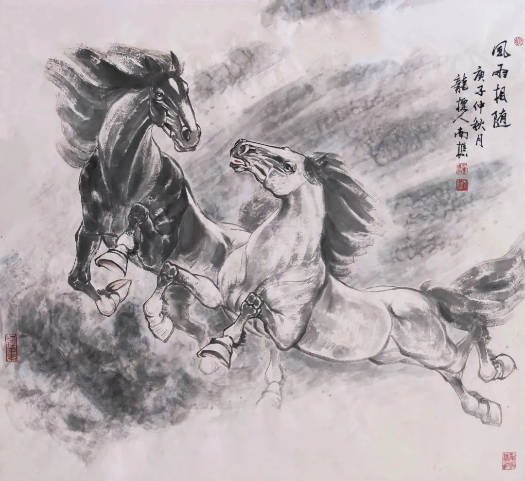 在当代画坛,邓南樵以马为魂,独树一帜。其笔下骏马,或奔腾如疾风骤雨,气势磅礴;或悠然似闲云野鹤,自在洒脱,将马的万千姿态与神韵展现得淋漓尽致。