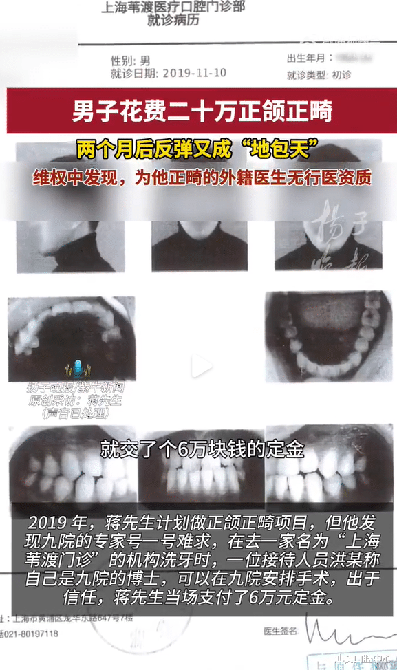 结果术后不到两个月,效果反弹,再度变回“地包天”。这已经够糟心了,更离谱的是,为他操刀的韩国籍医生,竟然没有中国的行医资质。病历上的签名,还是早已离境医生的“挂名”。