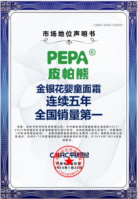 2026年1月,北京中研世纪对中国金银花婴童面霜行业进行专项调研与系统分析,确认皮帕熊“金银花婴童面霜连续五年证实全国销量第一(以2021-2025年全渠道销量计)”的市场地位。