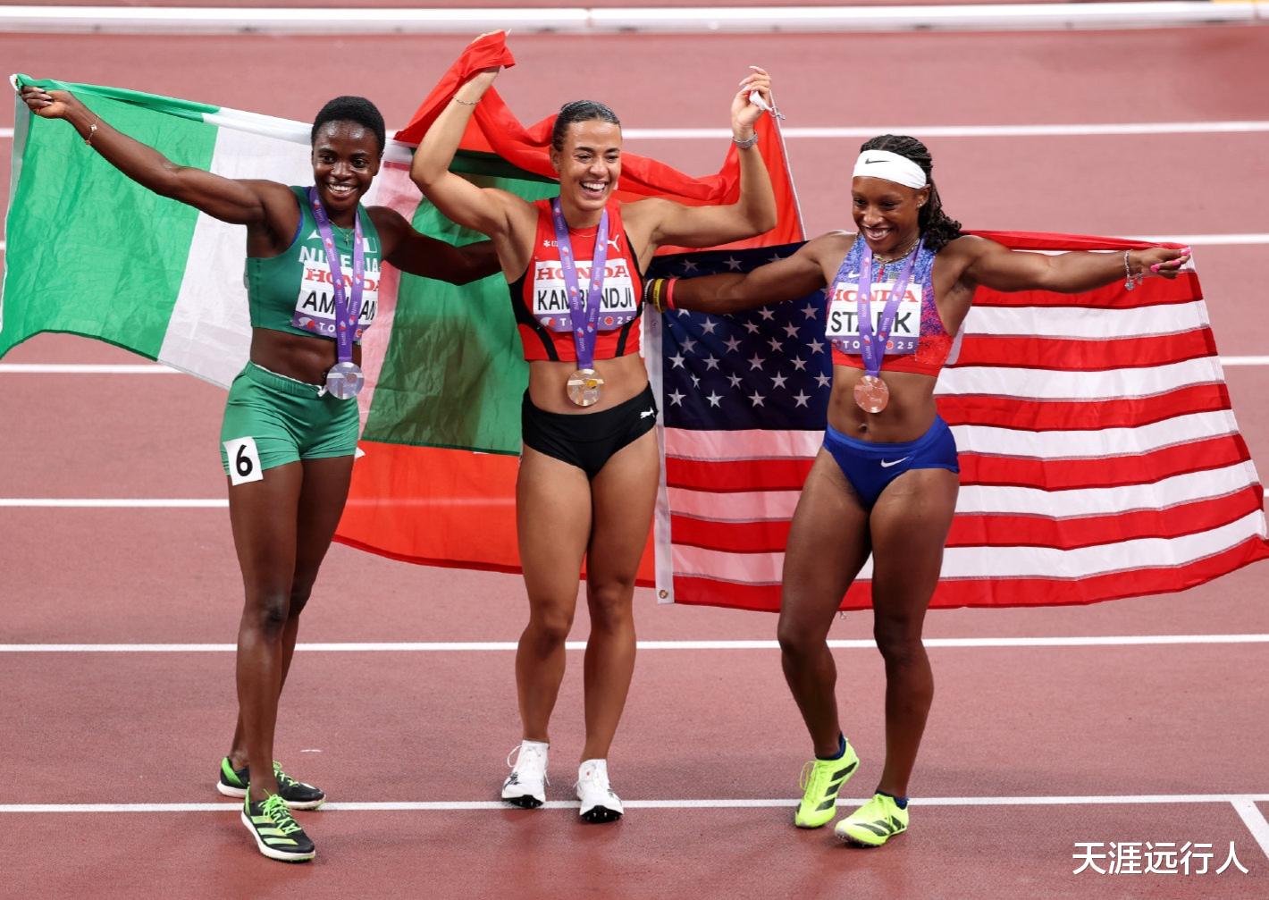 惊爆大冷,瑞士迪塔吉·坎邦吉,以12秒24创瑞士国家纪录夺冠,尼日利亚埃弗拉·阿姆桑,以12秒29重新登上领奖台,美国斯塔克12秒34获得铜牌,大热美国的拉塞尔仅仅排名第四。