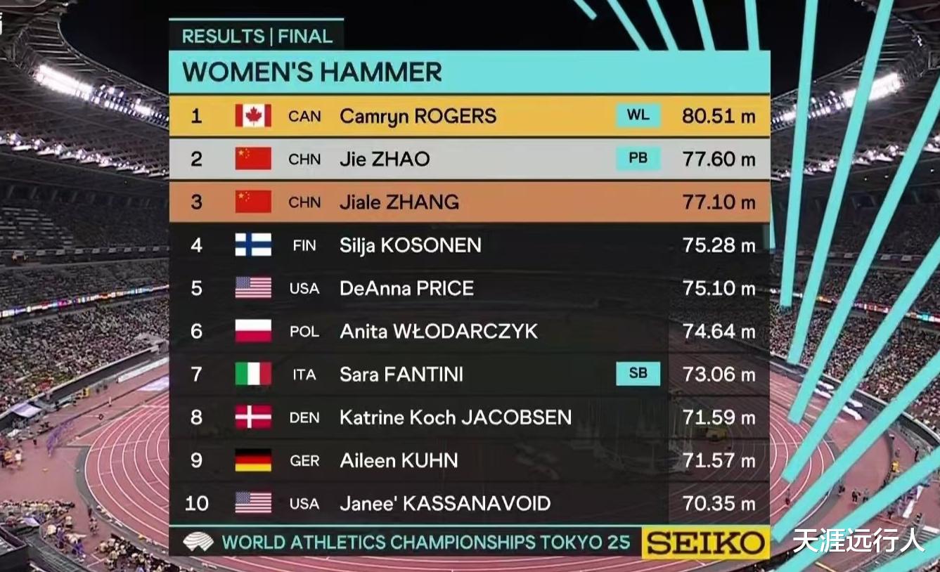 她的师妹张家乐则以77米10收获一枚铜牌