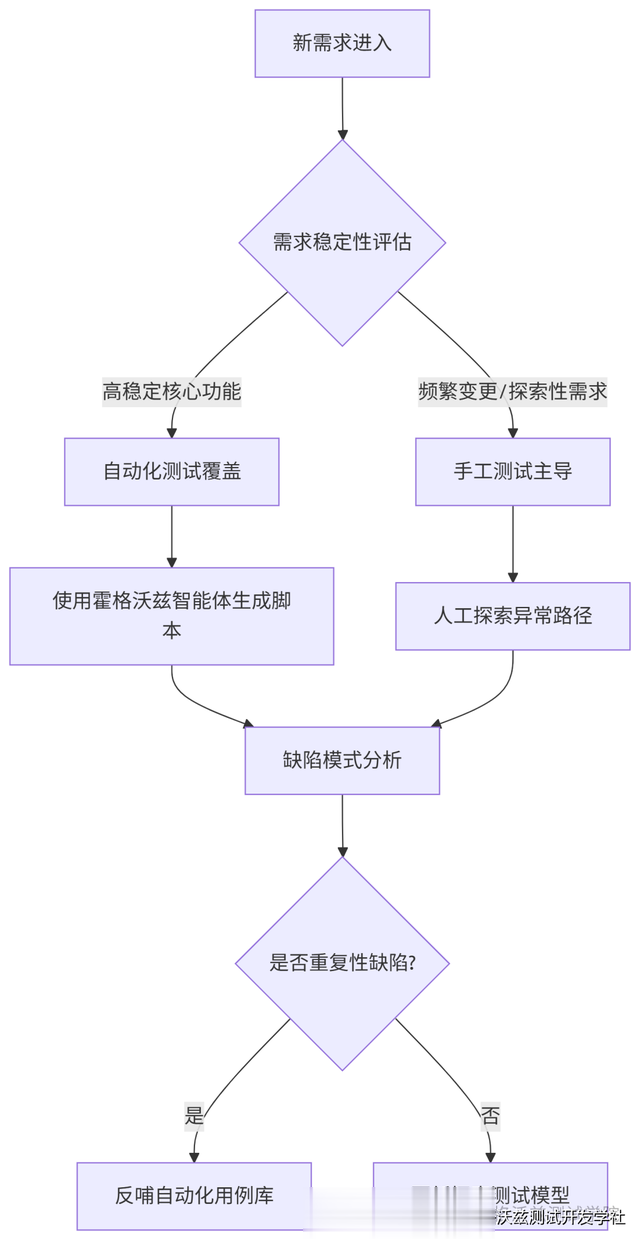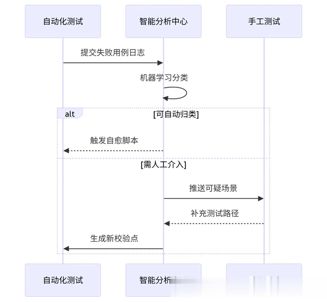 当自动化用例失败率>15%时,触发人工复核手工发现同类缺陷≥3次,自动生成脚本需求