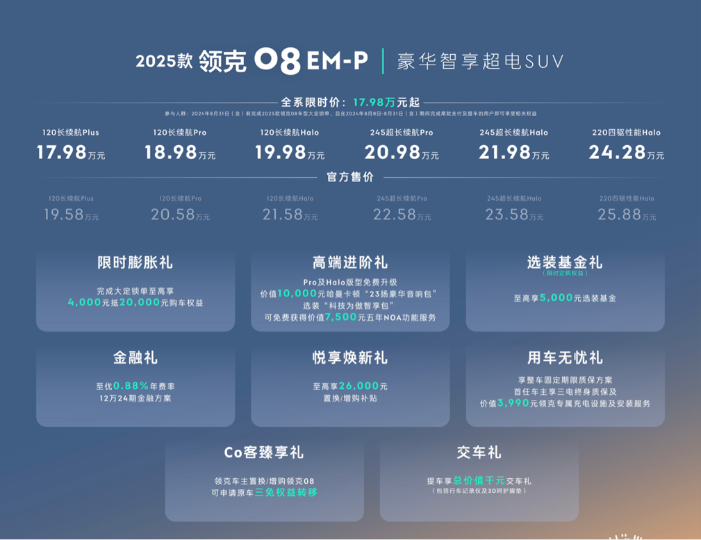 不可否认,这次2025款领克08 EM-P焕新升级后,再一次成功塑造了18万级SUV市场的价值标杆。对于追求高品质生活的消费者而言,这款车型无疑是一个极具吸引力的选择,也不断刷新着大众对豪华新能源SUV的认知与期待!