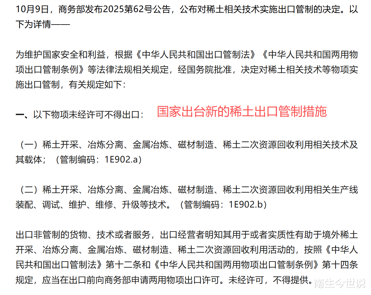 虽然很困难,虽然需要很长时间,但不代表“永远不会成功”。所以,我国就在今天出台了更宽泛的稀土出口管制措施——转向了对整个产业生态和能力的管控,范围覆盖了技术、设备、服务等能帮助他国构建稀土产业链的方方面面。