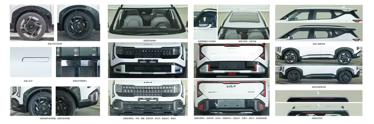 来到车身侧面,可以看到一些与起亚EV车型相似的设计元素,比如隐藏式门把手和较为明显的黑色宽体包边,这些细节让整车看起来多了一点“电动车风格”。车身腰线从前往后逐渐上扬,与悬浮式车顶形成呼应。后门位置还加入了一条对角折线,让侧面轮廓看起来不那么单调。