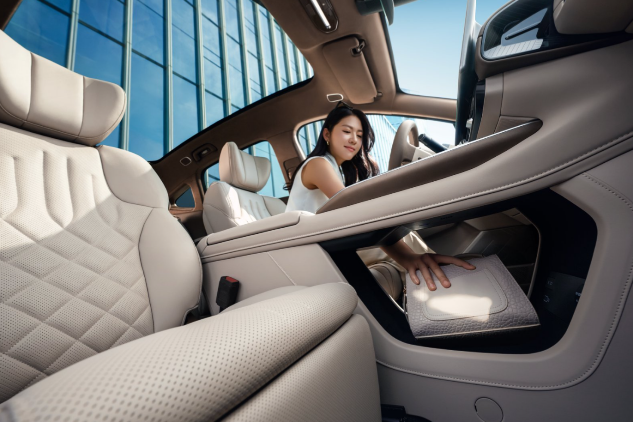 2935mm的轴距,让后排不再是凑合坐,而是能自在地伸个懒腰。143°后排天王椅配上脚蹬,老人靠在上面,腿能舒展;小桌板支起来,孩子画画、放零食都有了地方;大扶手一搭,长途也不觉得累。抬头是全景天窗,好在有电动遮阳帘,天热时关上,车里依旧清凉;隐私玻璃则让家人多了一份自在。22扬声器的杜比全景声,带来歌剧院般的体验,车厢里都是好心情。