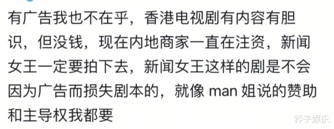 《新闻女王2》没因赞助商塞内娱的演员,已经很知足了。就如文姐说的,赞助和主导权我都要。